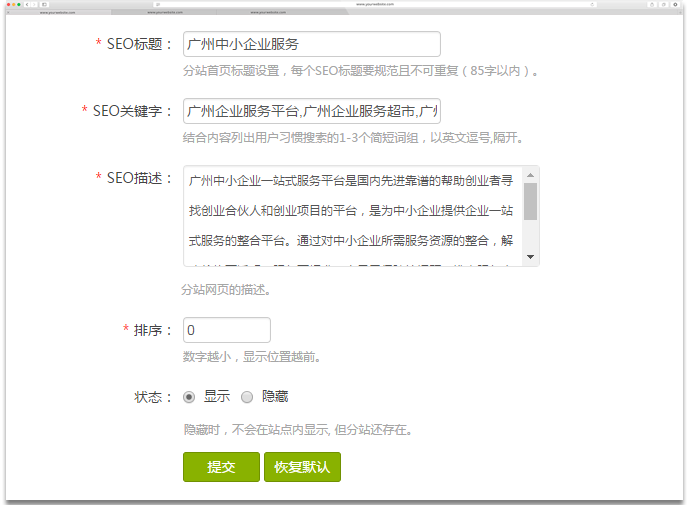 分站可进行独立SEO优化, 可独立设置客服,联系方式, 可独立使用顶级域名