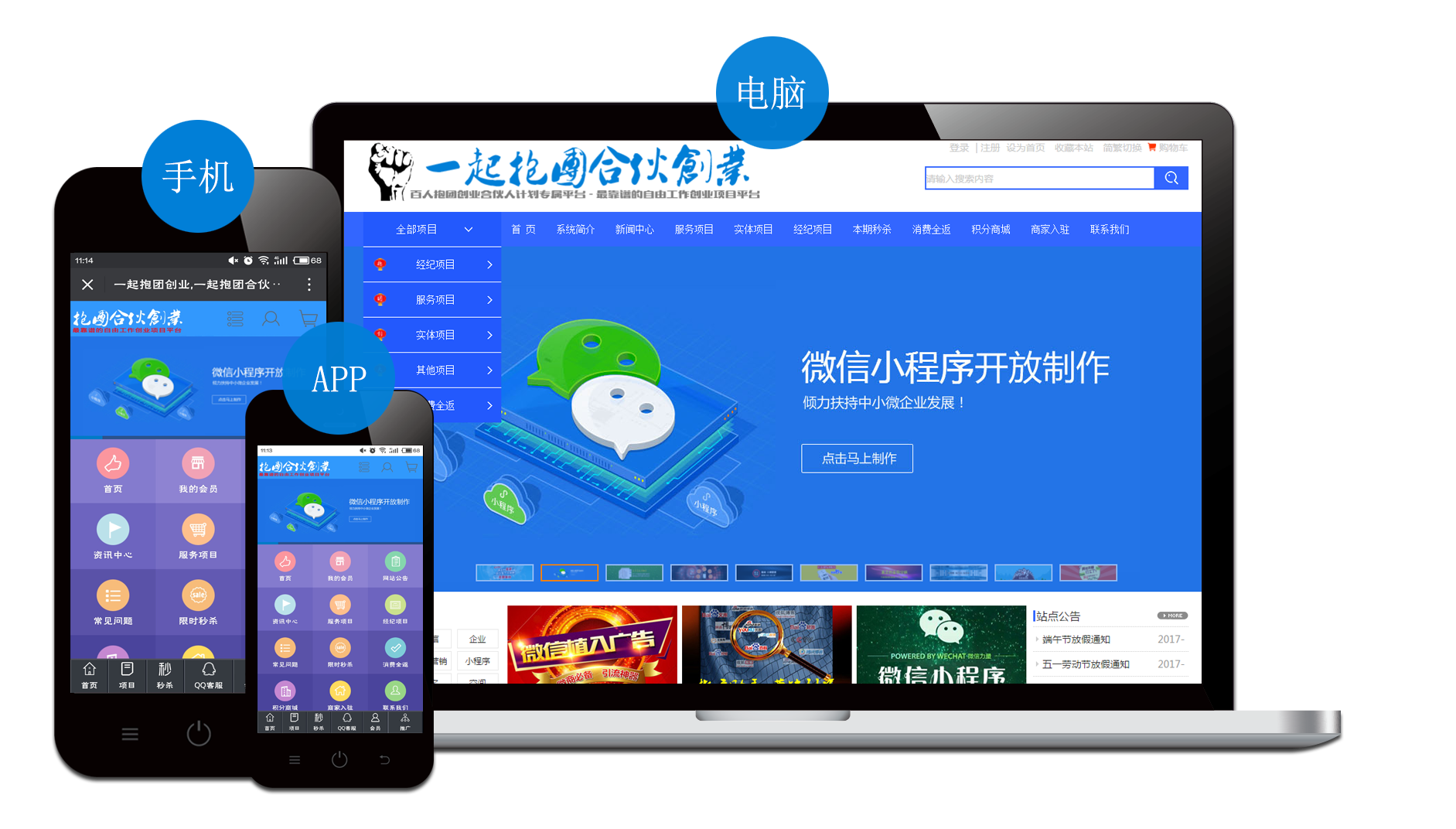 多合一网站可以随时升级制作小程序, APP,实现更多终端覆盖,提升客户体验, 提升品牌形象。
